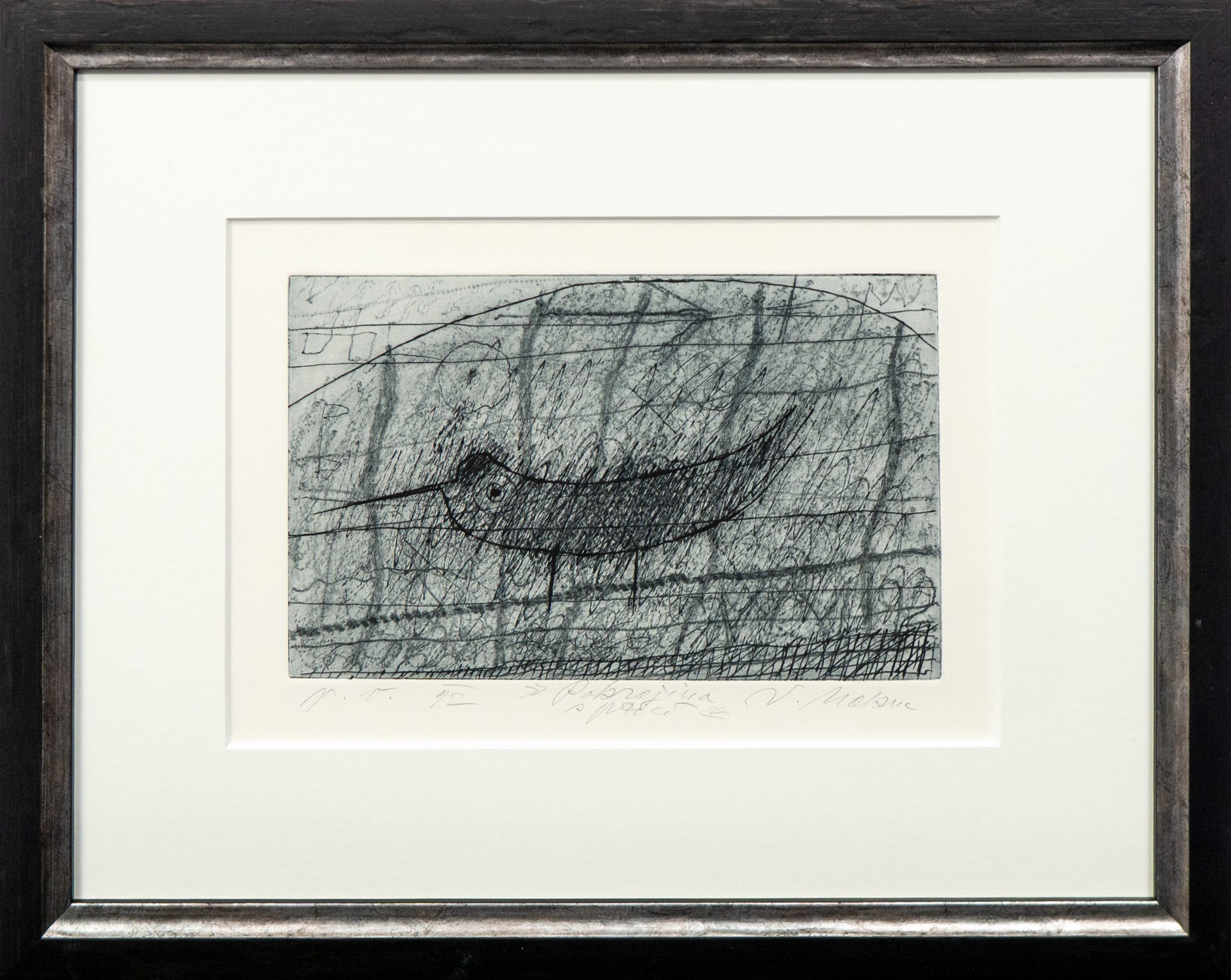 17 cm x 27 cm (odtis), okvirjeno 41 cm x 51 cm,