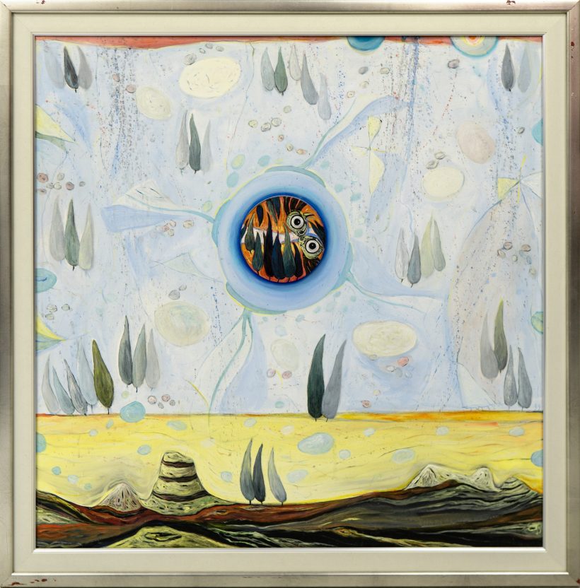 90 cm x 90 cm, okvirjeno 102 x 102 cm,